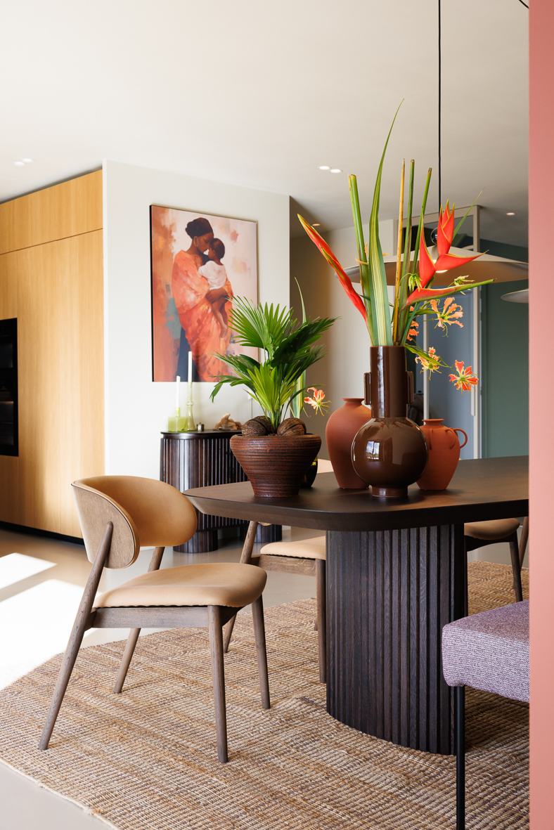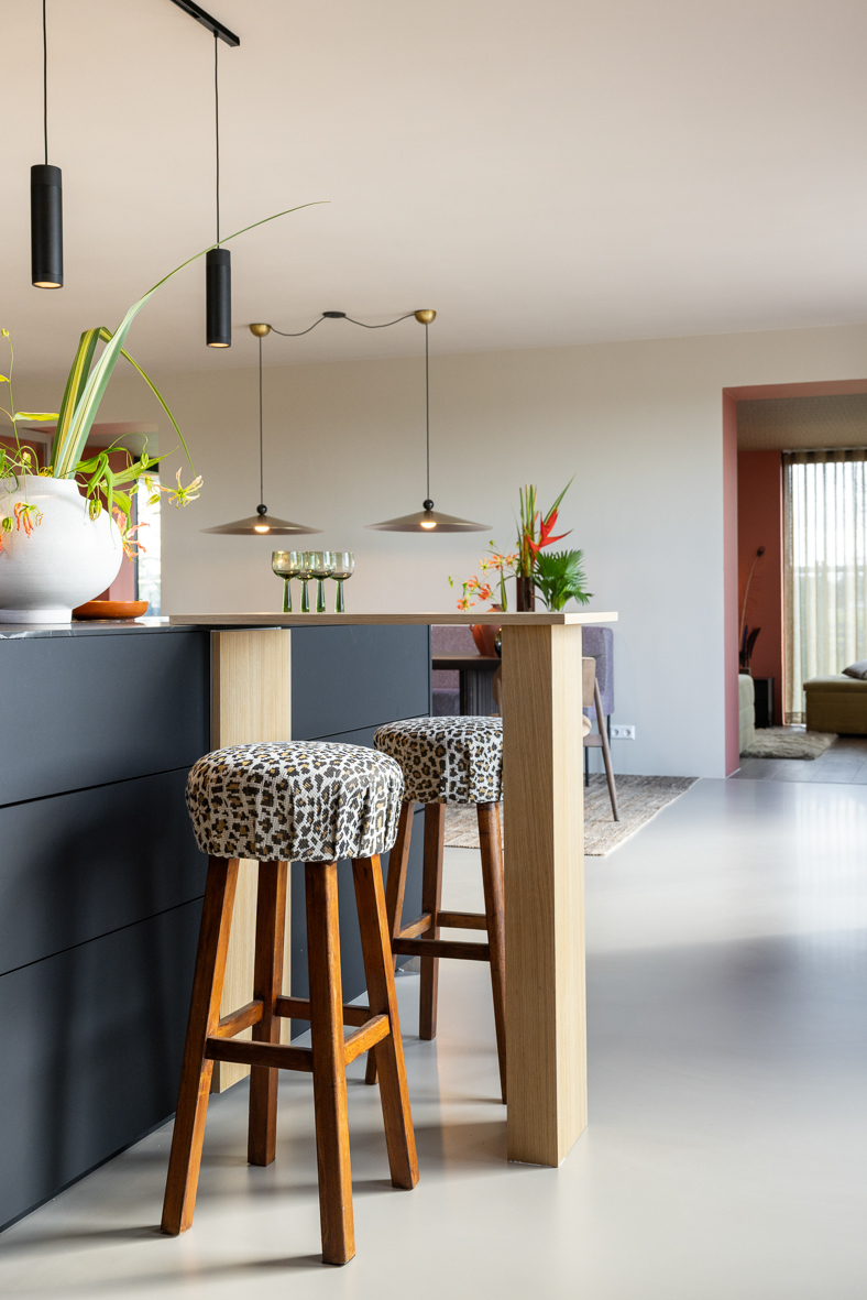 Kelly wist op meesterlijke wijze het kleurrijke, reislustige karakter van Shelley te combineren met de klassieke rust van Boaz. De gekozen kleuren zorgen samen voor een levendig, harmonieus geheel waarin stijl, sfeer én persoonlijkheid perfect samenkomen.